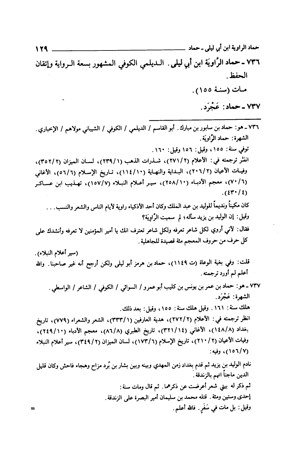 حماد الراوية ابن أبي ليلى. الديلمي الكوفي المشهور بسعة الراوية وإتقان الحفظ.