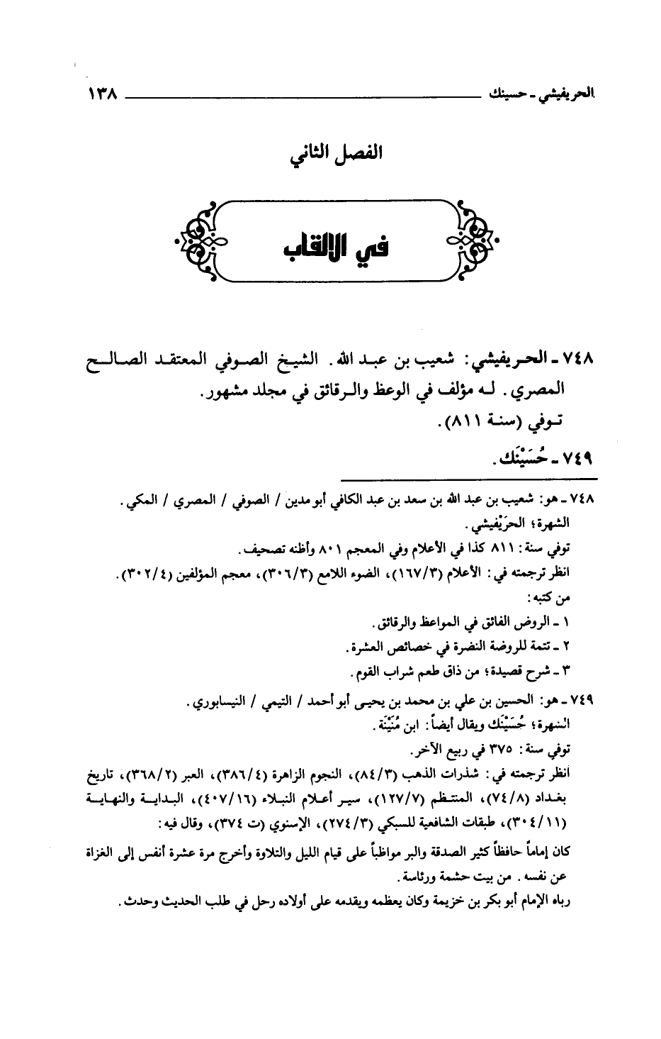 الحريفيشي: شعيب بن عبد الله. الشيخ الصوفي المعتقد الصالح المصري. له مؤلف في الوعظ والرقائق في مجلد مشهور.