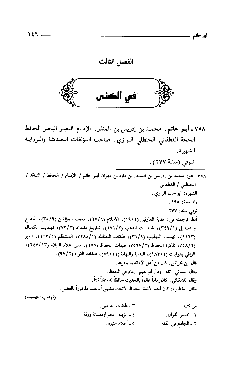 أبو حاتم: محمد بن إدريس بن المنذر. الإمام الحبر البحر الحافظ الحجة الغطفاني الحنظلي الرازي. صاحب المؤلفات الحديثية والرواية الشهيرة.