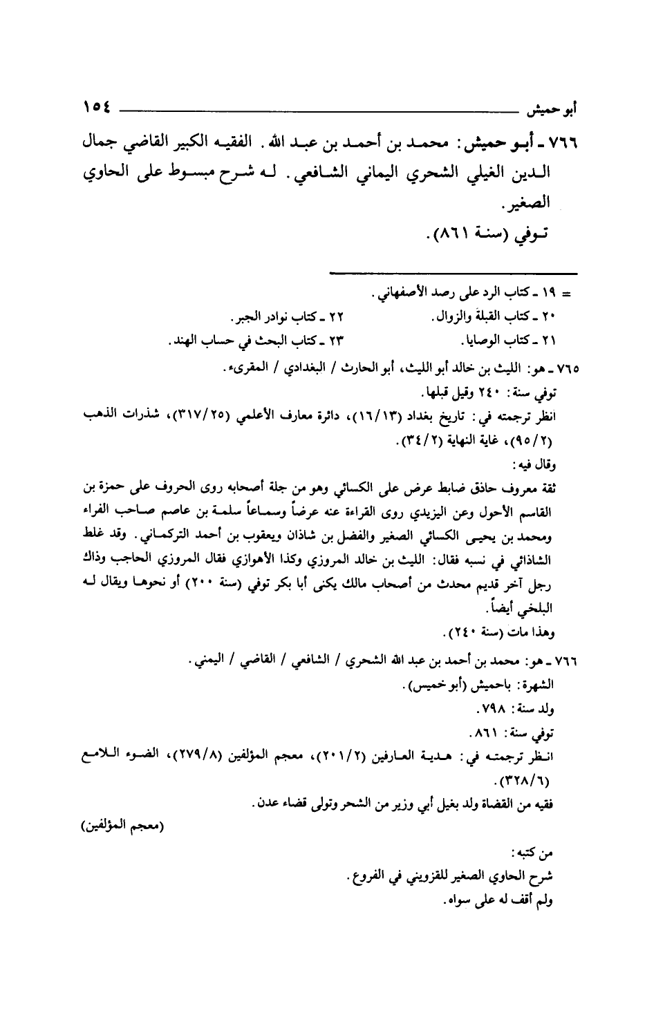 أبو حميش: محمد بن أحمد بن عبد الله. الفقيه الكبير القاضي جمال الدين الغيلي الشحري اليماني الشافعي. له شرح مبسوط على الحاوي الصغير.