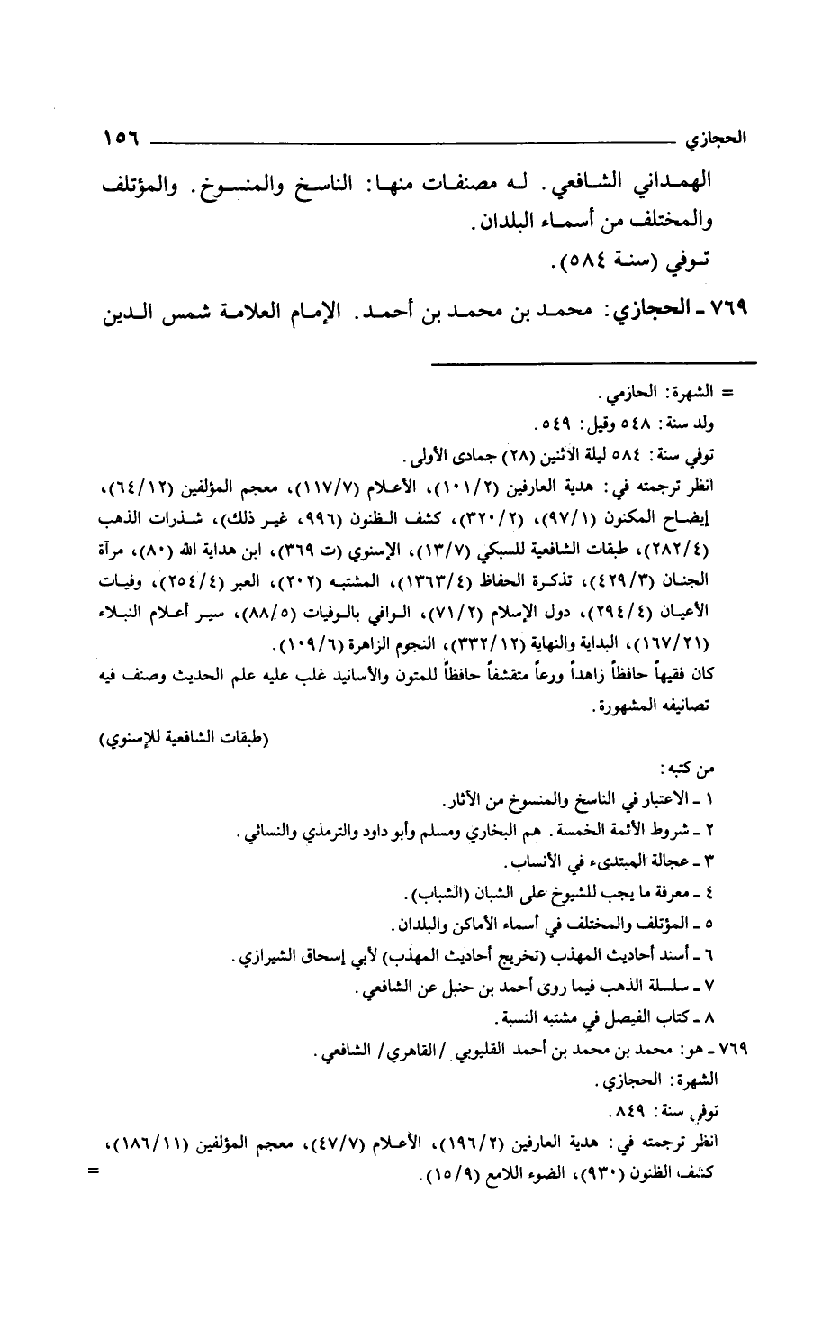 الهمداني الشافعي. له مصنفات منها: الناسخ والمنسوخ. والمؤتلف والمختلف من أسماء البلدان.