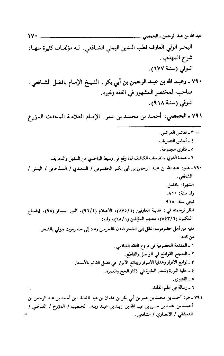 وعبد الله بن عبد الرحمن بن أبي بكر. الشيخ الإمام بافضل الشافعي. صاحب المختصر المشهور في الفقه وغيره.