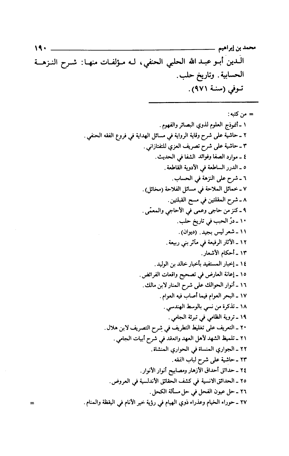 الدين أبو عبد الله الحلبي الحنفي، له مؤلفات منها: شرح النزهة الحسابية. وتاريخ حلب.