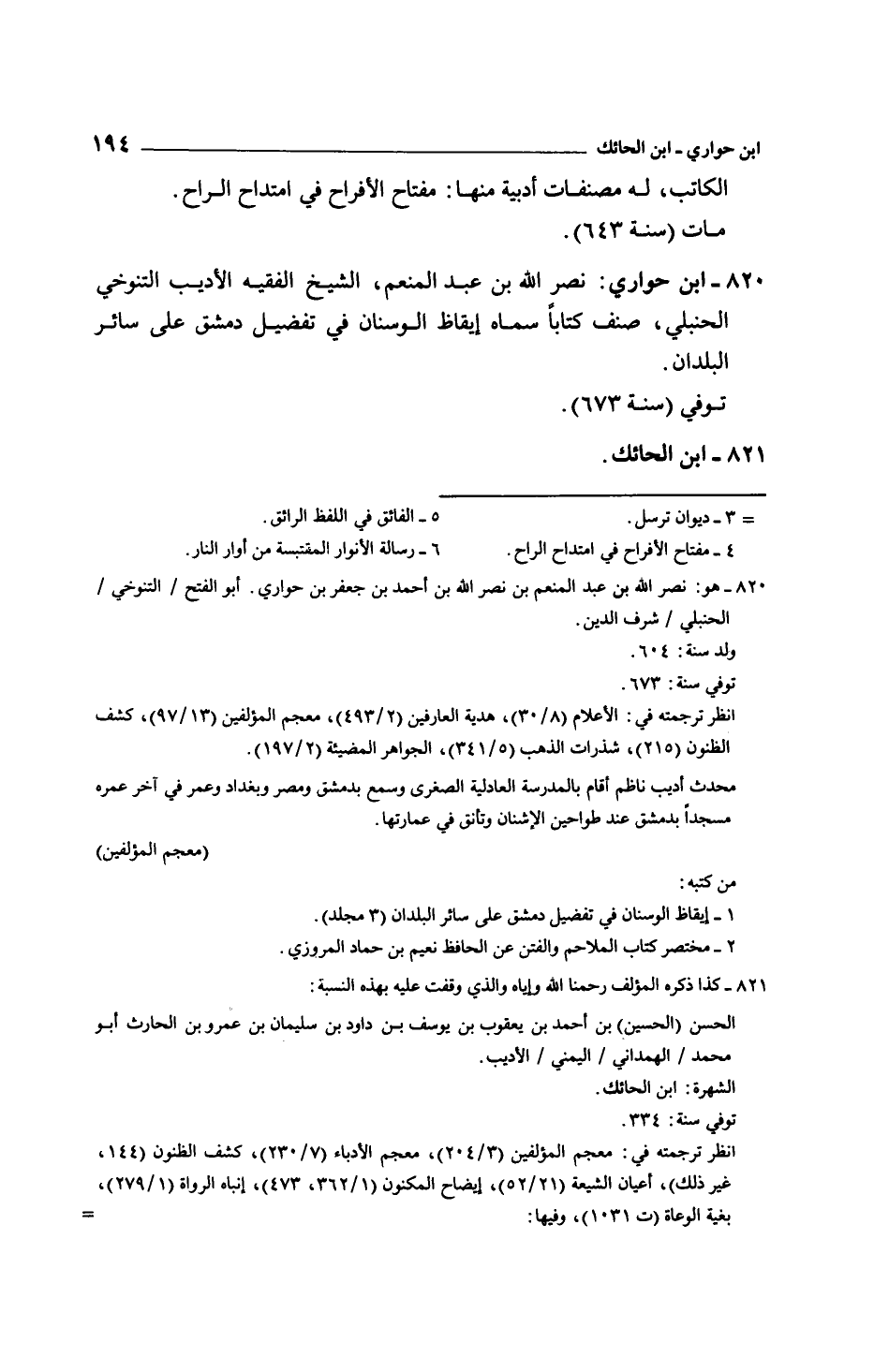 ابن حواري: نصر الله بن عبد المنعم، الشيخ الفقيه الأديب التنوخي الحنبلي، صنف كتاباً سماه إيقاظ الوسنان في تفصيل دمشق على سائر البلدان.