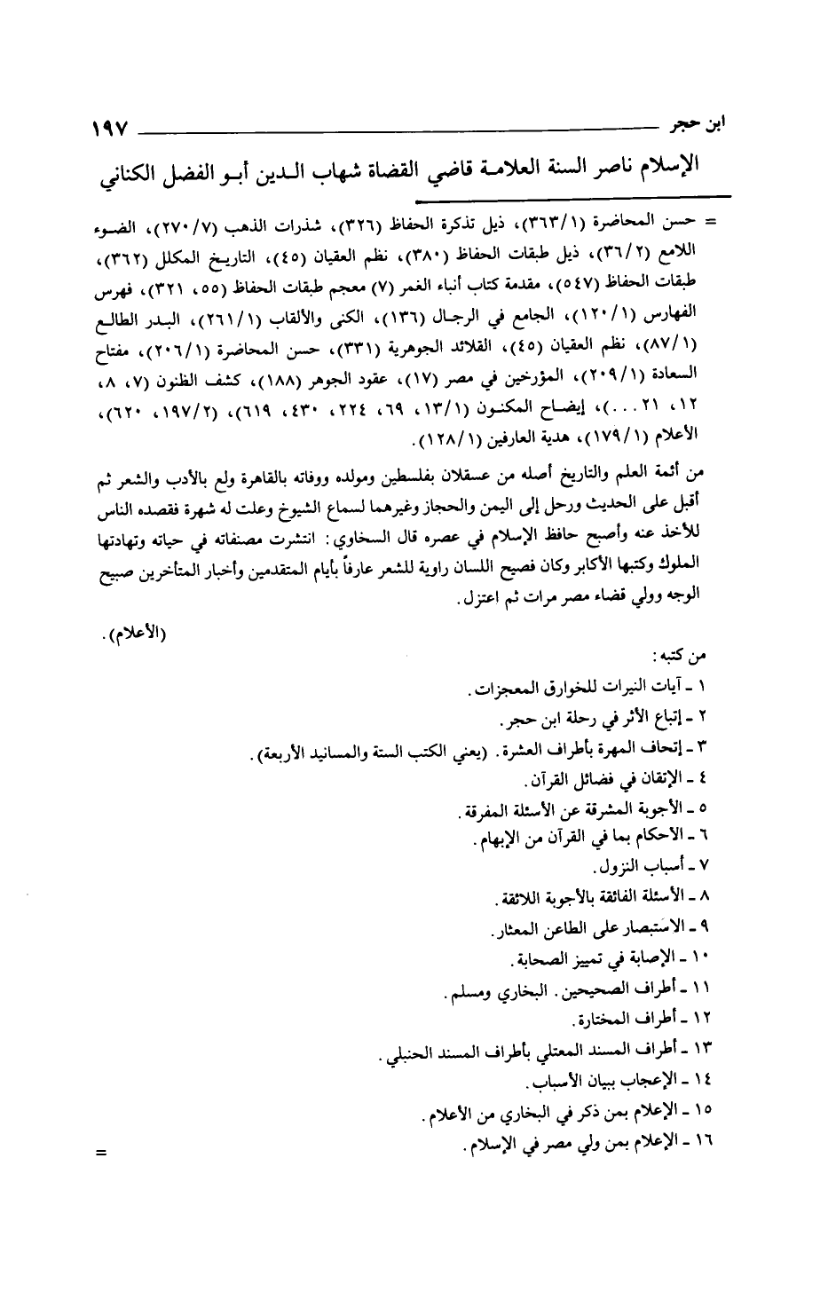 الإسلام ناصر السنة العلامة قاضي القضاة شهاب الدين أبو الفضل الكناني