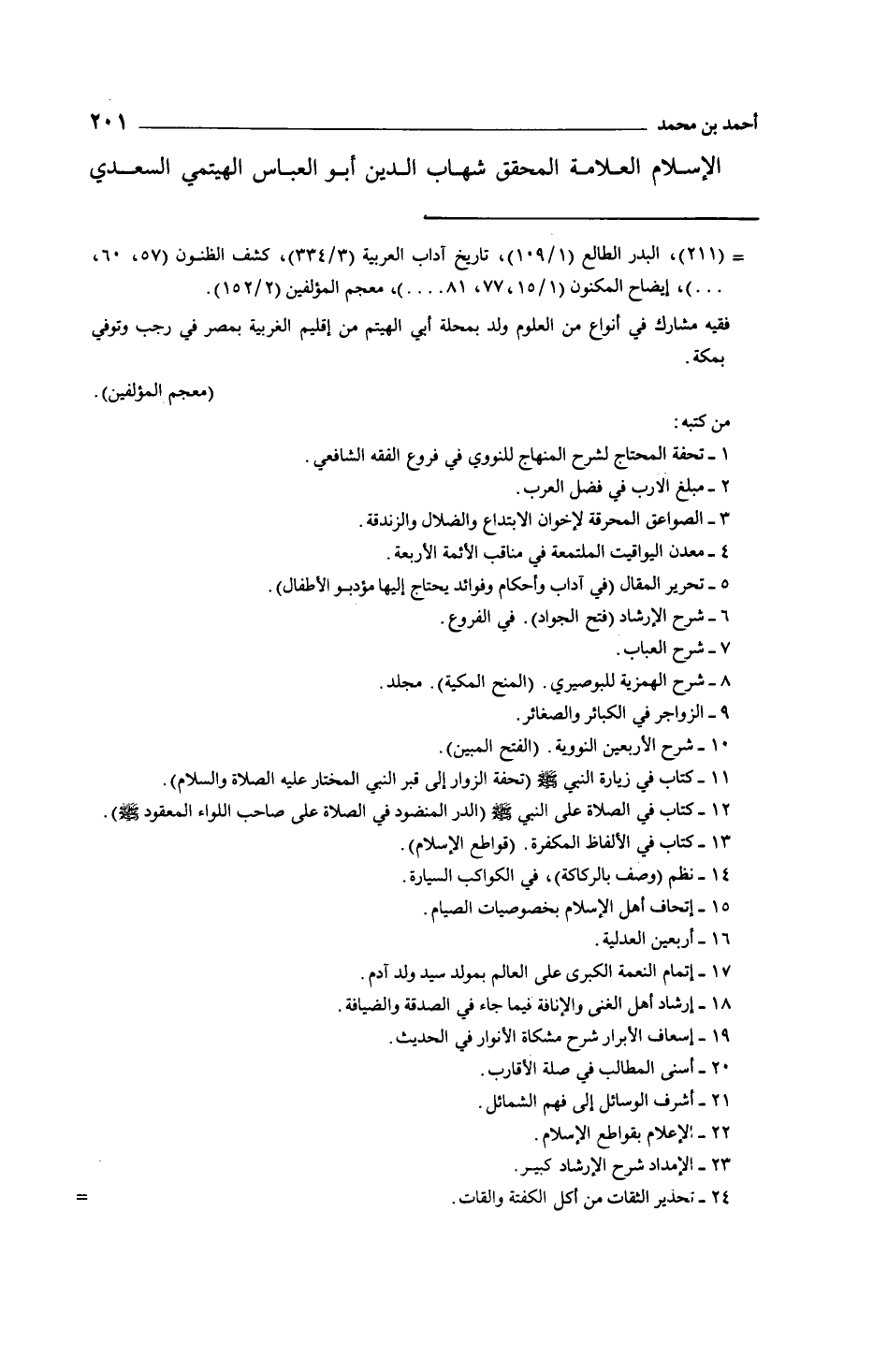 الإسلام العلامة المحقق شهاب الدين أبو العباس الهيتمي السعدي