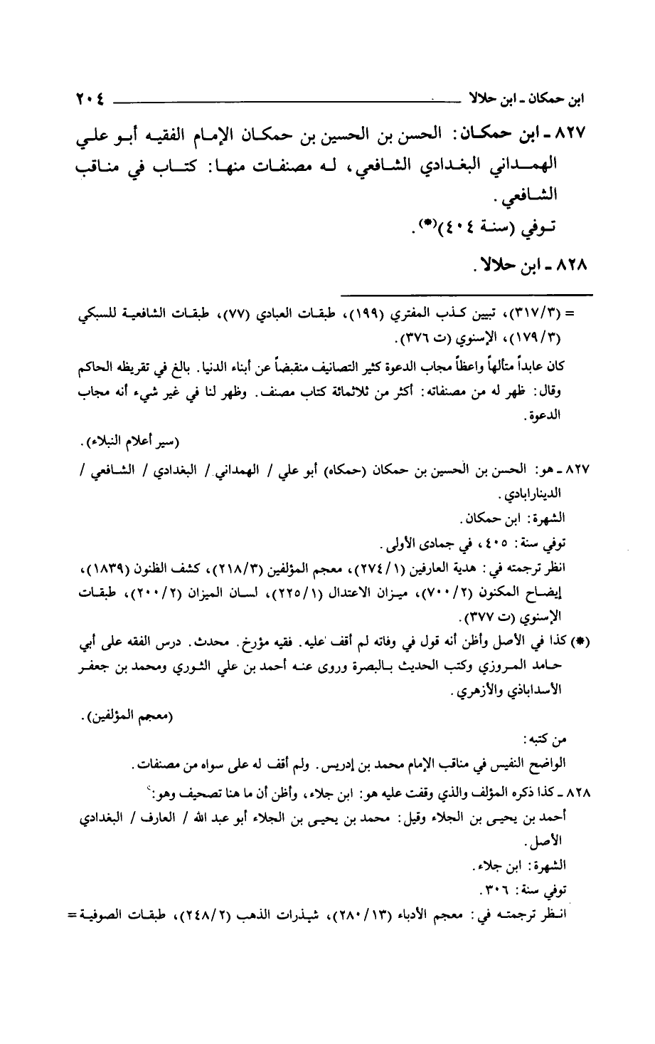 ابن حمكان: الحسن بن الحسين بن حمكان الإمام الفقيه أبو علي الهمداني البغدادي الشافعي، له مصنفات منها: كتاب في مناقب الشافعي.