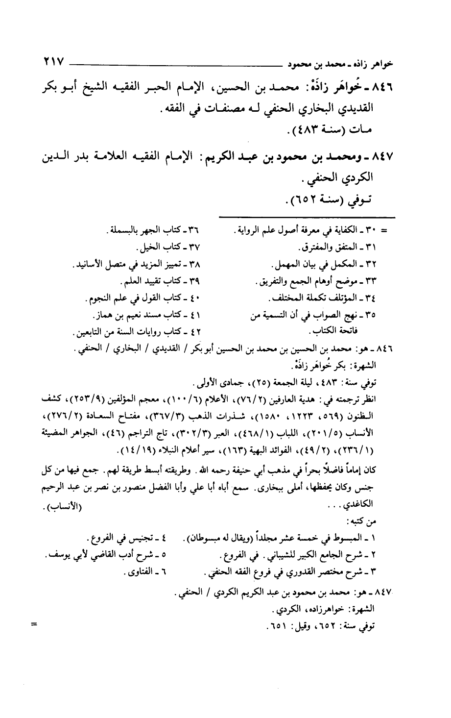 خواهر زاذه: محمد بن الحسين، الإمام الحبر الفقيه الشيخ أبو بكر القديدي البخاري الحنفي له مصنفات في الفقه.