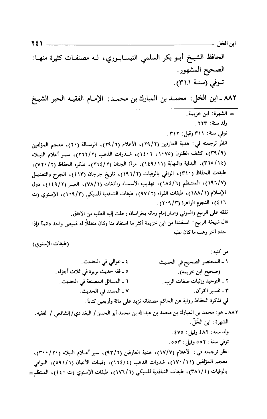 ابن الخل: محمد بن المبارك بن محمد: الإمام الفقيه الحبر الشيخ