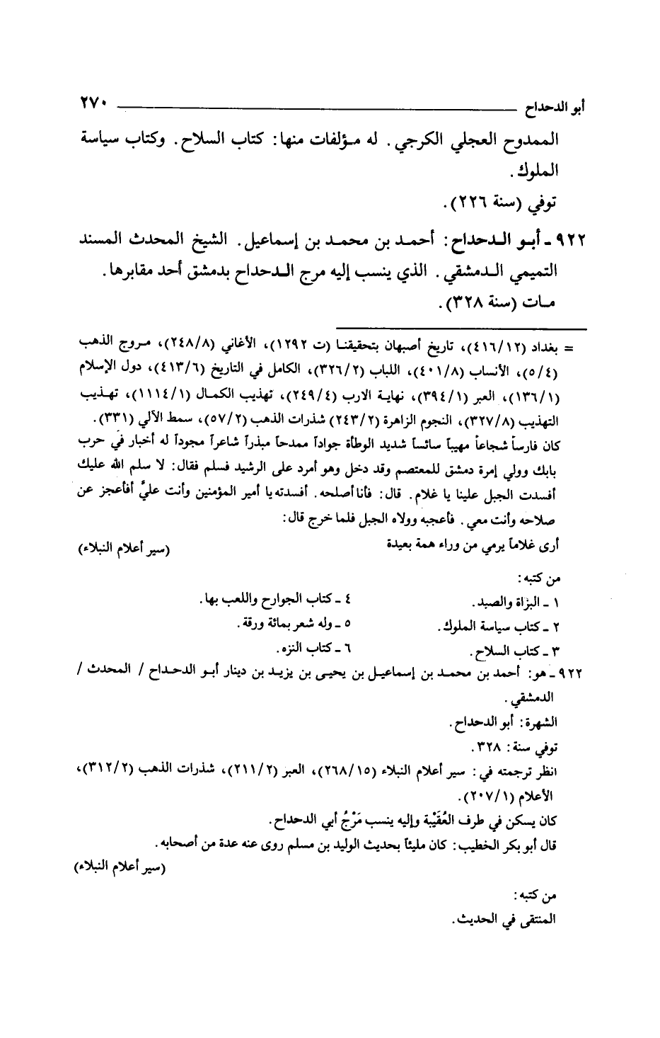 الممدوح العجلي الكرجي. له مؤلفات منها: كتاب السلاح. وكتاب سياسة الملوك.