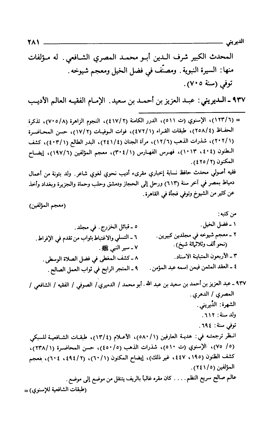 المحدث الكبير شرف الدين أبو محمد المصري الشافعي. له مؤلفات منها: السيرة النبوية. ومصنف في فضل الخيل ومعجم شيوخه.
