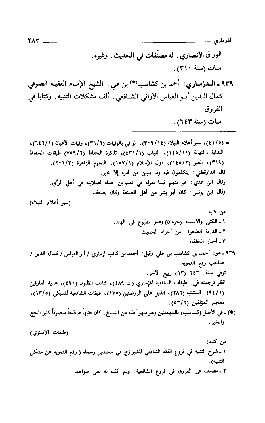 الدزماري: أحمد بن كشاسب بن علي. الشيخ الإمام الفقيه الصوفي كمال الدين أبو العباس الأراني الشافعي. ألف مشكلات التنبيه. وكتاباً في الفروق.