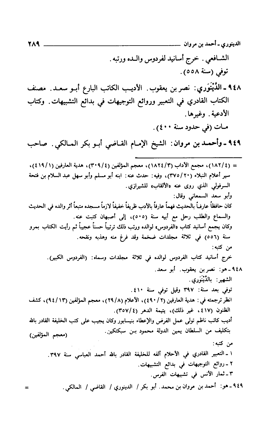الدينوري: نصر بن يعقوب. الأديب الكاتب البارع أبو سعد. مصنف الكتاب القادري في التعبير وروائع التوجيهات في بدائع التشبيهات. وكتاب الأدعية. وغيرها.