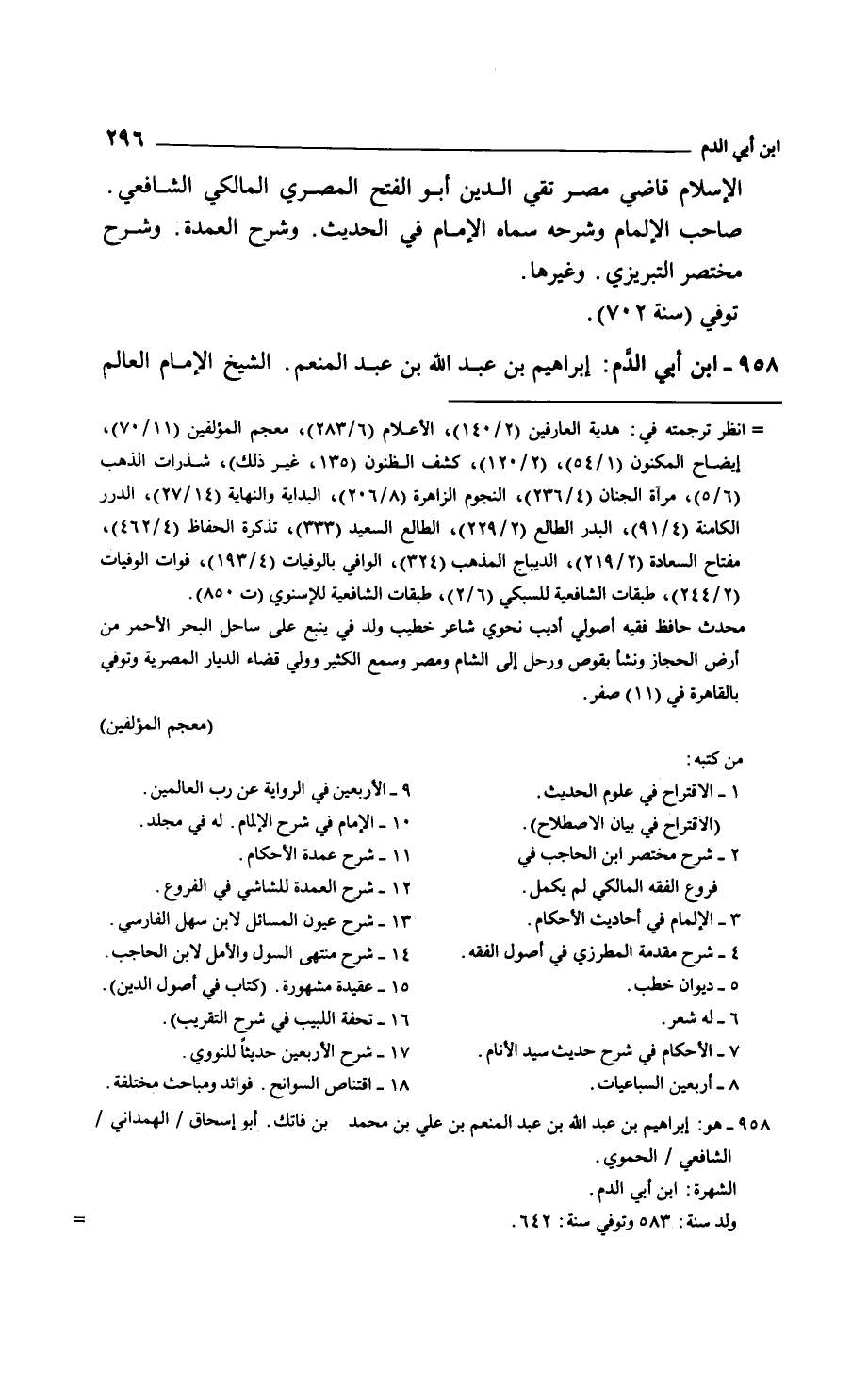 ابن أبي الدم: إبراهيم بن عبد الله بن عبد المنعم. الشيخ الإمام العالم
