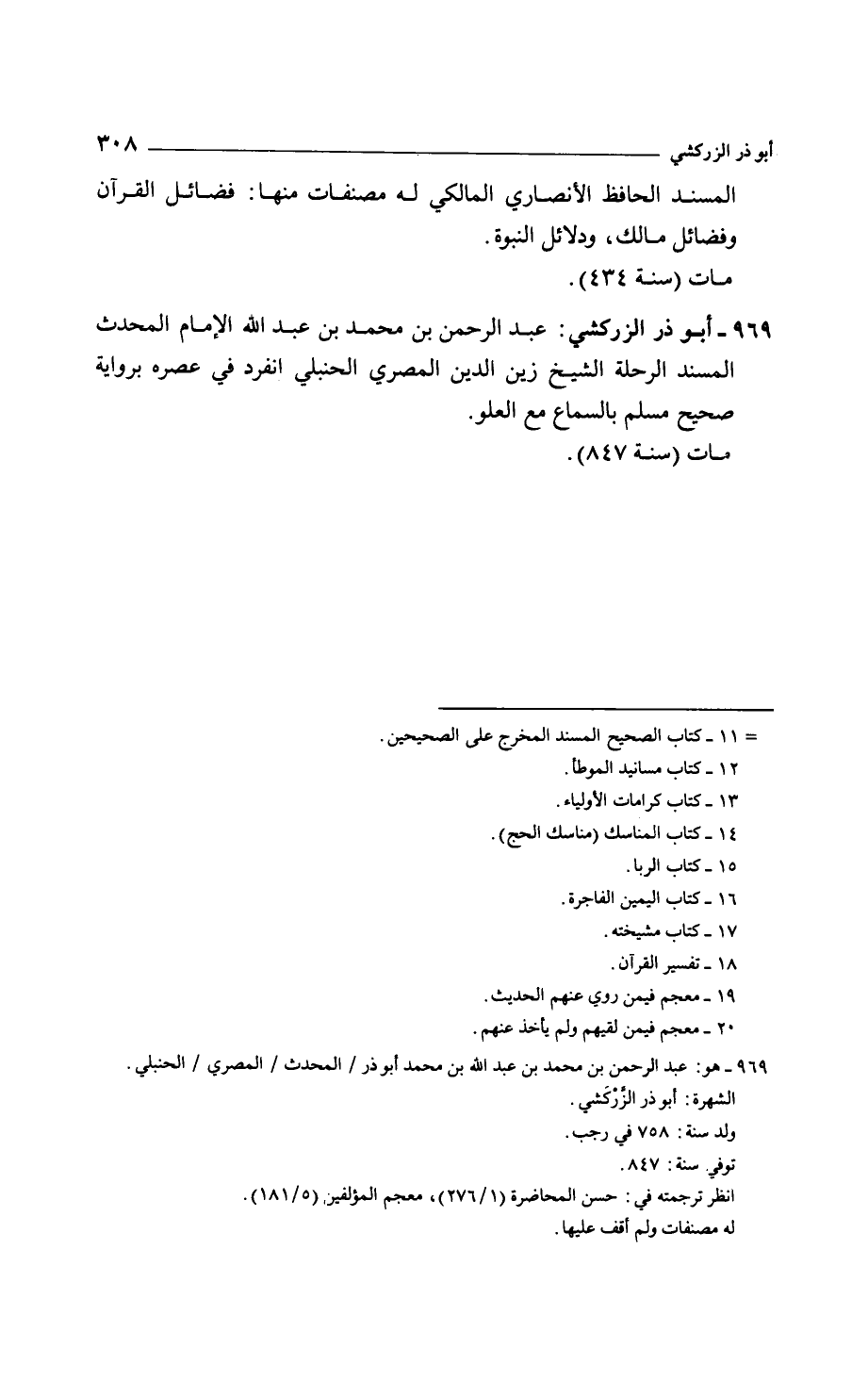 أبو ذر الزركشي: عبد الرحمن بن محمد بن عبد الله الإمام المحدث المسند الرحلة الشيخ زين الدين المصري الحنبلي انفرد في عصره برواية صحيح مسلم بالسماع مع العلو.