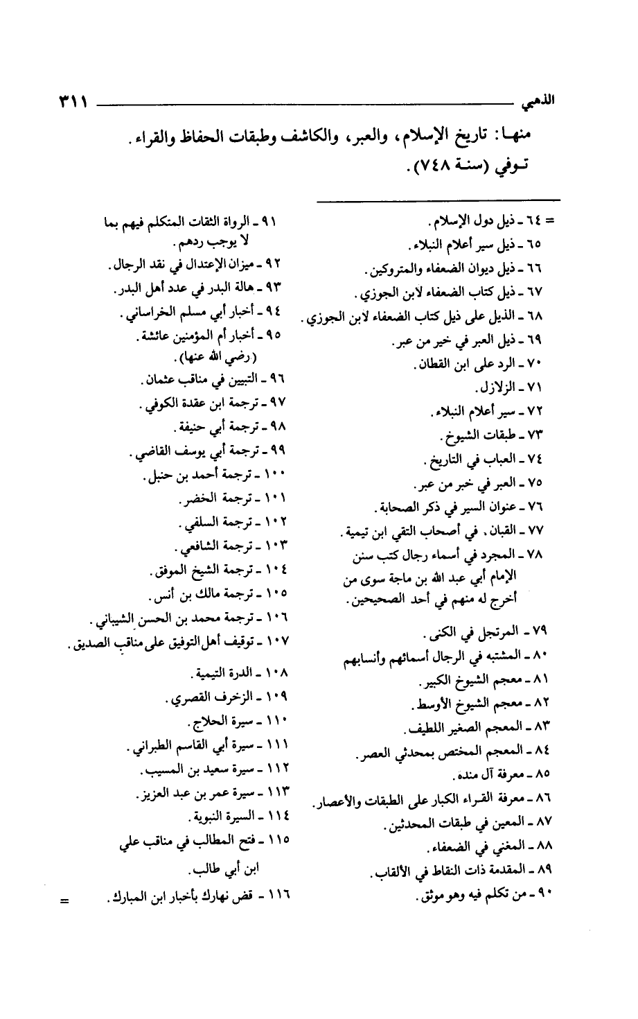 منها: تاريخ الإسلام، والعبر، والكاشف وطبقات الحفاظ والقراء.