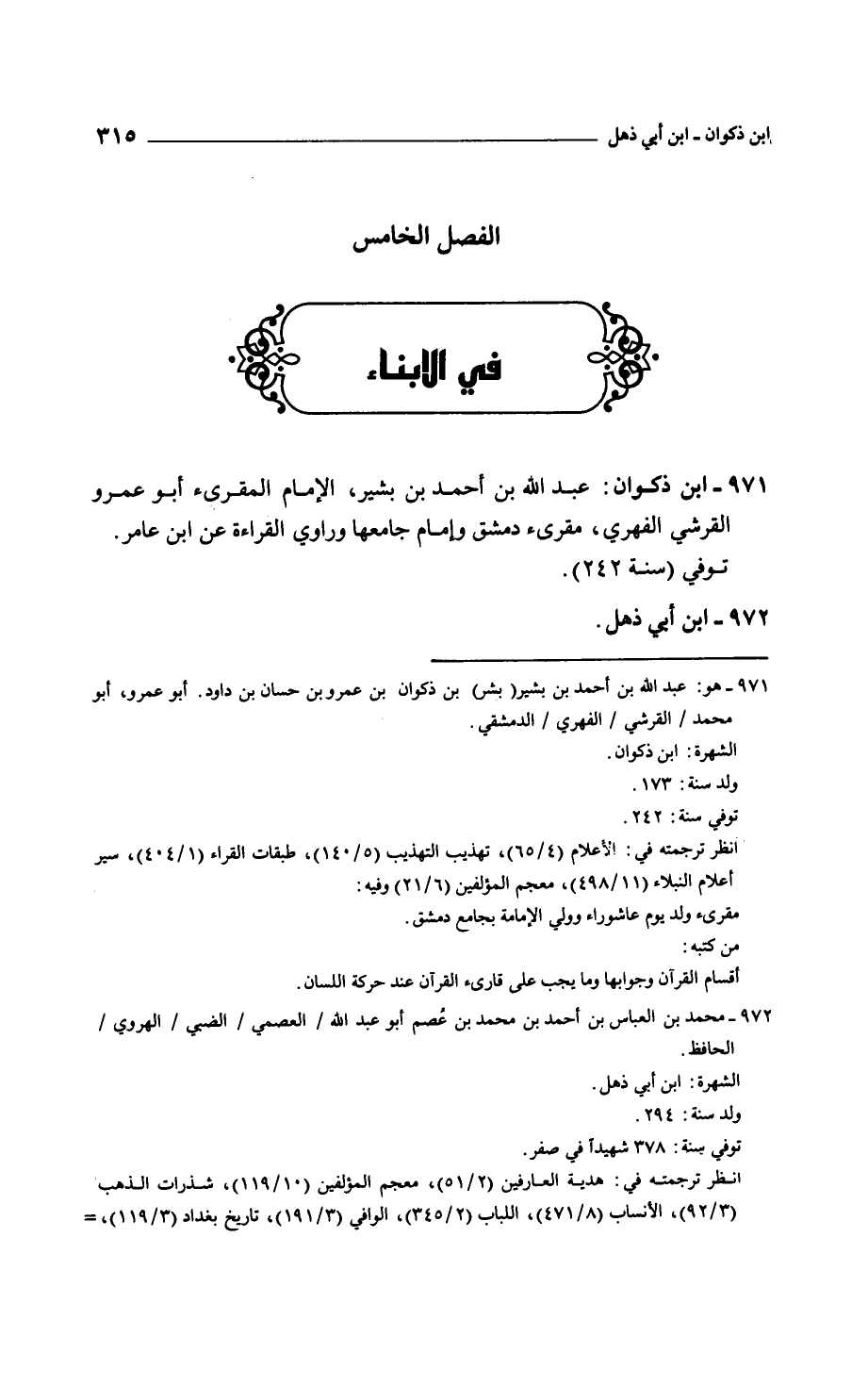 ابن ذكوان: عبد الله بن أحمد بن بشير، الإمام المقرىء أبو عمرو القرشي الفهري، مقرىء دمشق وإمام جامعها وراوي القراءة عن ابن عامر.