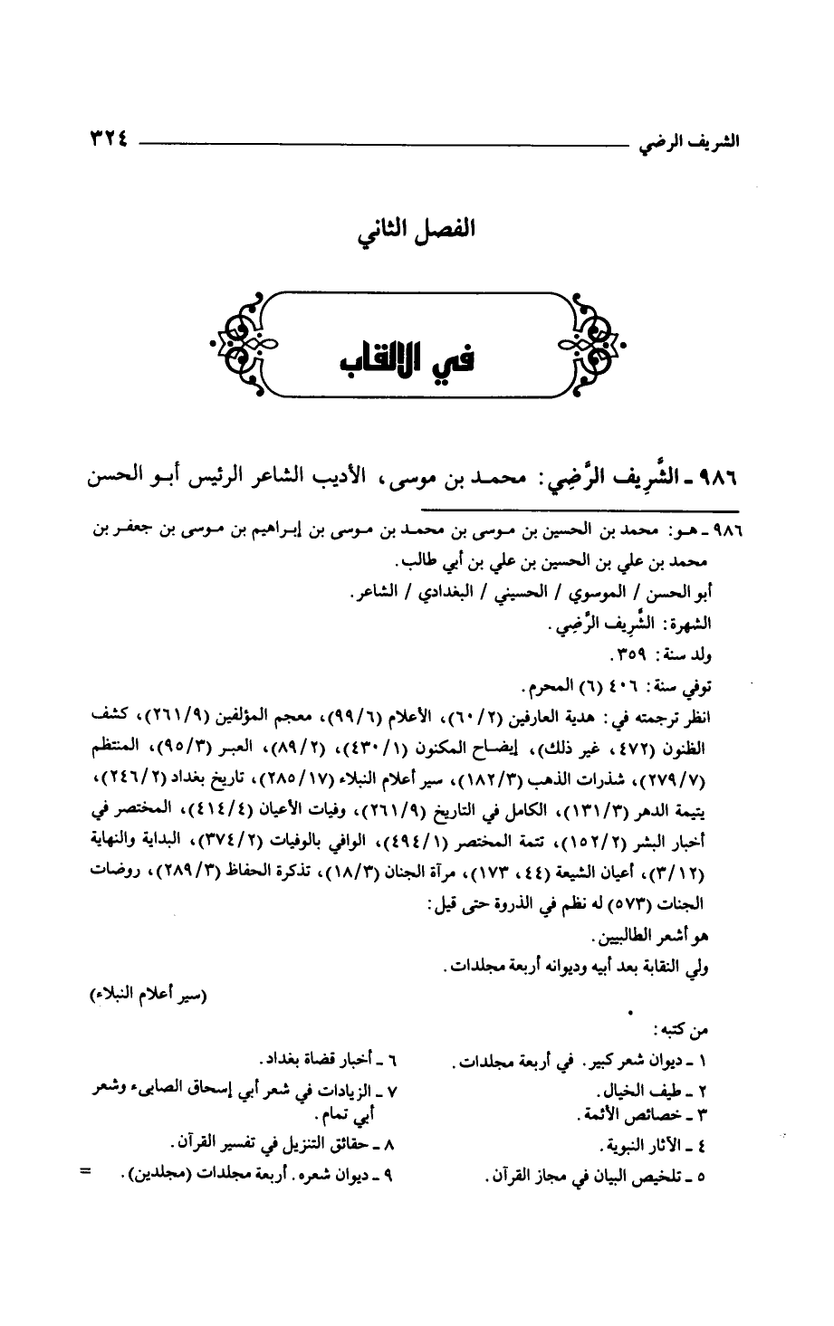 الشريف الرضي: محمد بن موسى، الأديب الشاعر أبو الحسن