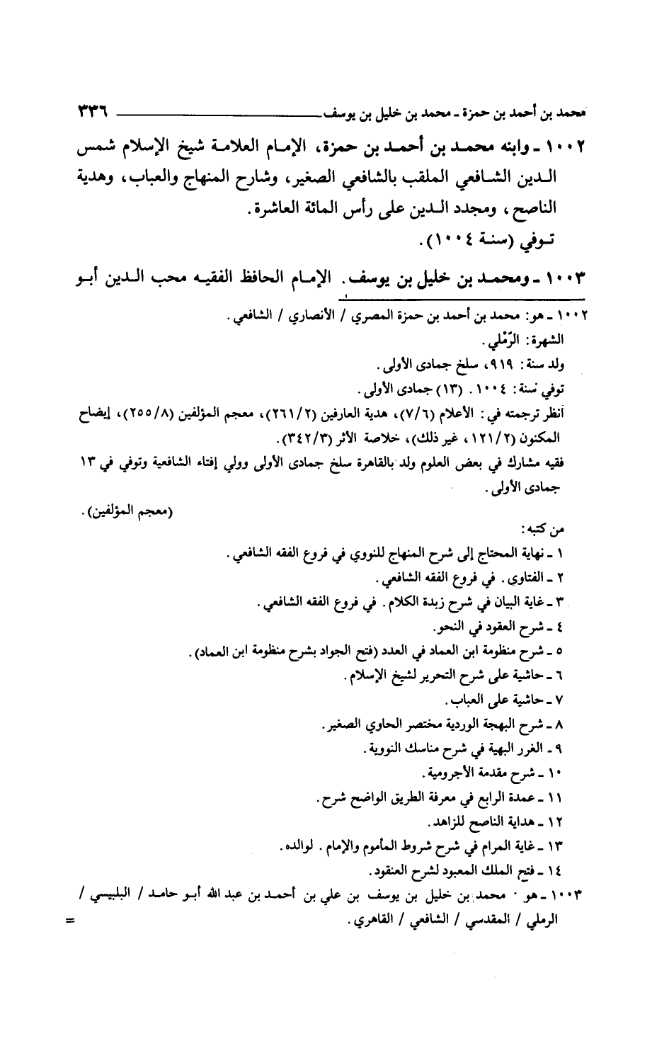 وابنه محمد بن أحمد بن حمزة، الإمام العلامة شيخ الإسلام شمس الدين الشافعي الملقب بالشافعي الصغير، وشارح المنهاج والعباب، وهدية الناصح، ومجدد الدين على رأس المائة العاشرة.
