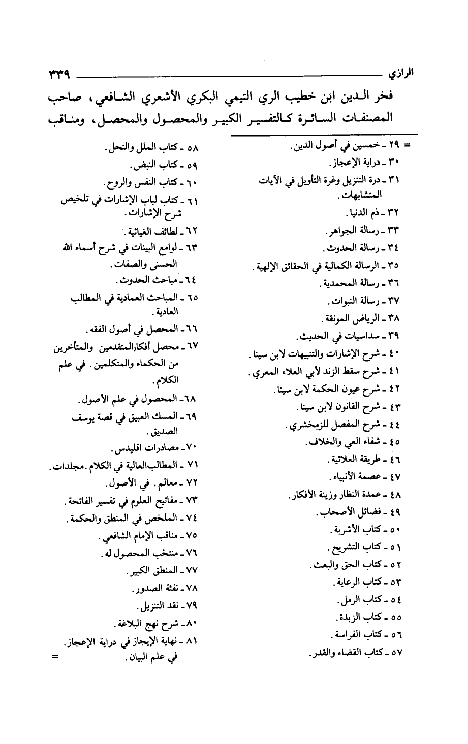 فخر الدين ابن خطيب الري التيمي البكري الأشعري الشافعي، صاحب المصنفات السائرة كالتفسير الكبير والمحصول والمحصل، ومناقب