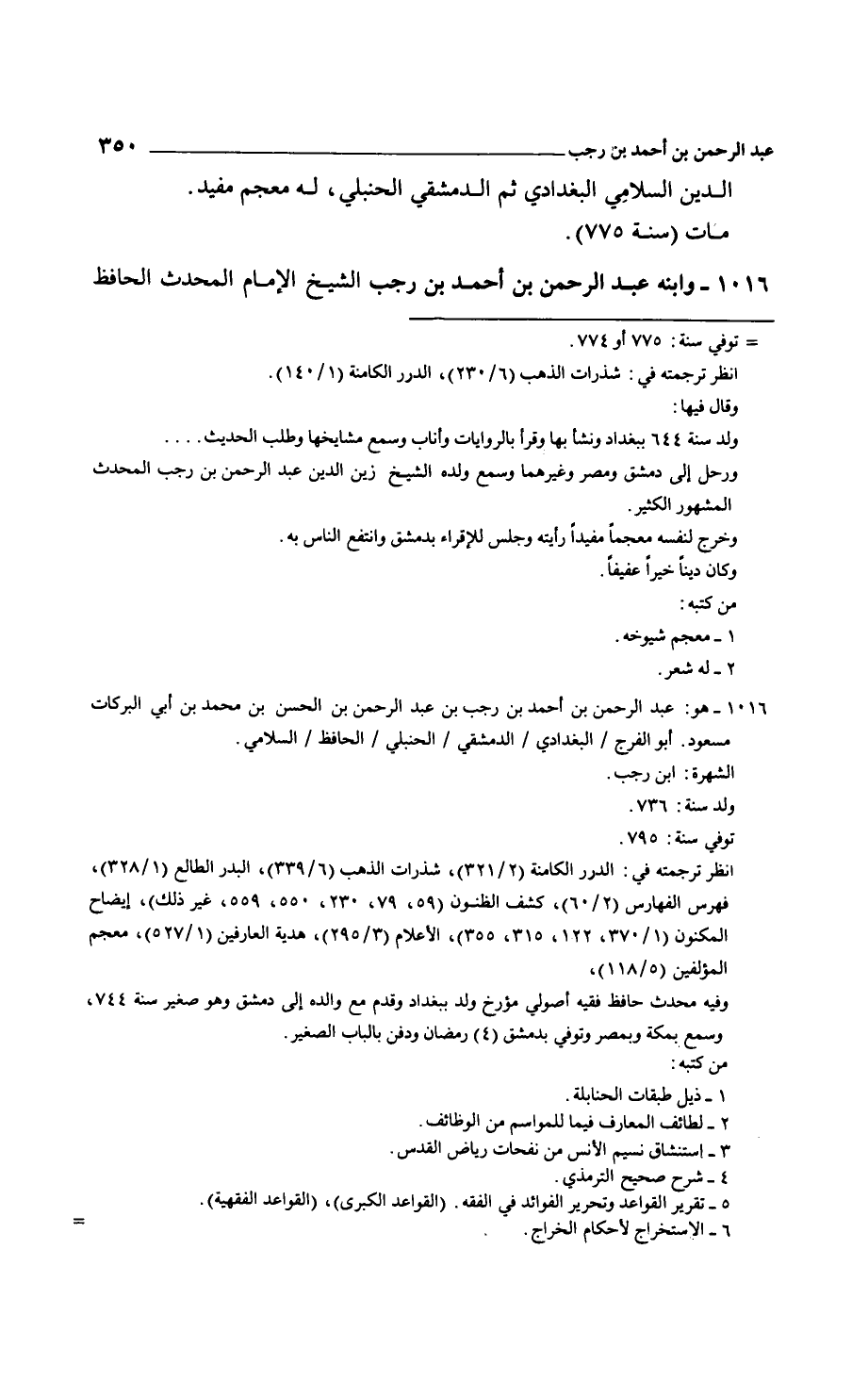 وابنه عبد الرحمن بن أحمد بن رجب الشيخ الإمام المحدث الحافظ