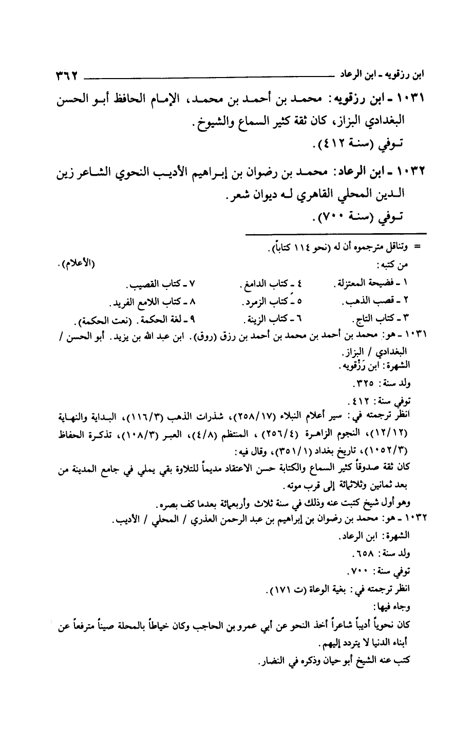 ابن الرعاد: محمد بن رضوان بن إبراهيم الأديب النحوي الشاعر زين الدين المحلي القاهري له ديوان شعر.