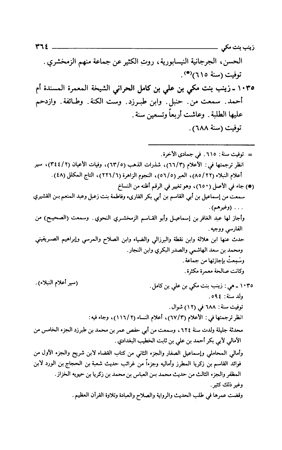 زينب بنت مكي بن علي بن كامل الحراني الشيخة المعمرة المسندة أم أحمد. سمعت من حنبل. وابن طبرزد. وست الكنة. وطائفة. وازدحم عليها الطلبة. وعاشة أربعاً وتسعين سنة.