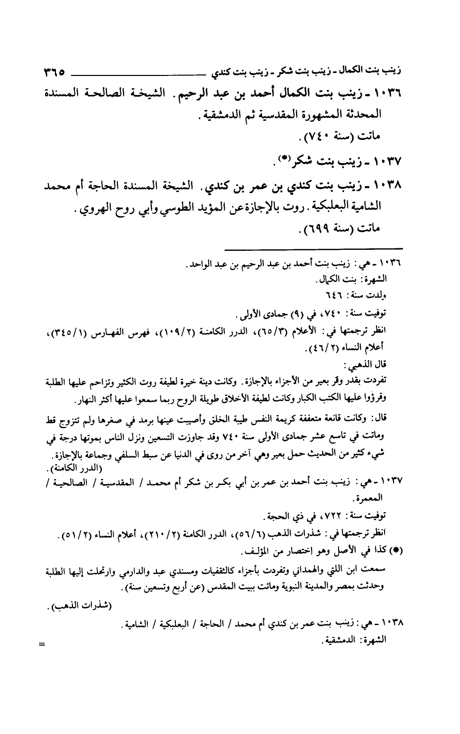زينب بنت الكمال أحمد بن عبد الرحيم. الشيخة الصالحة المسندة المحدثة المشهورة المقدسية ثم الدمشقية.
