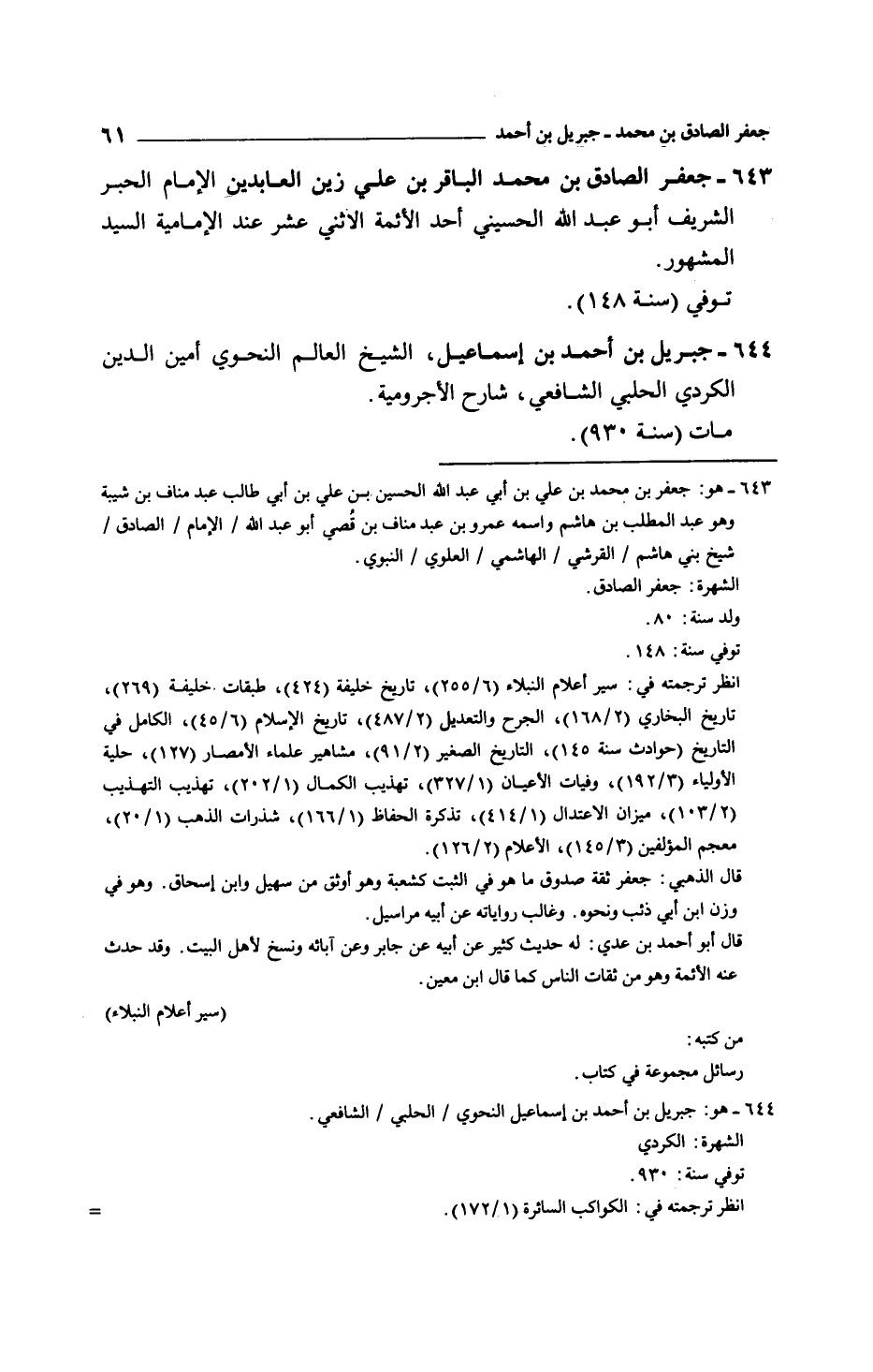 جعفر الصادق بن محمد الباقر بن علي زين العابدين الإمام الحبر الشريف أبو عبد الله الحسيني أحد الأئمة الاثني عشر عند الإمامية السيد المشهور.