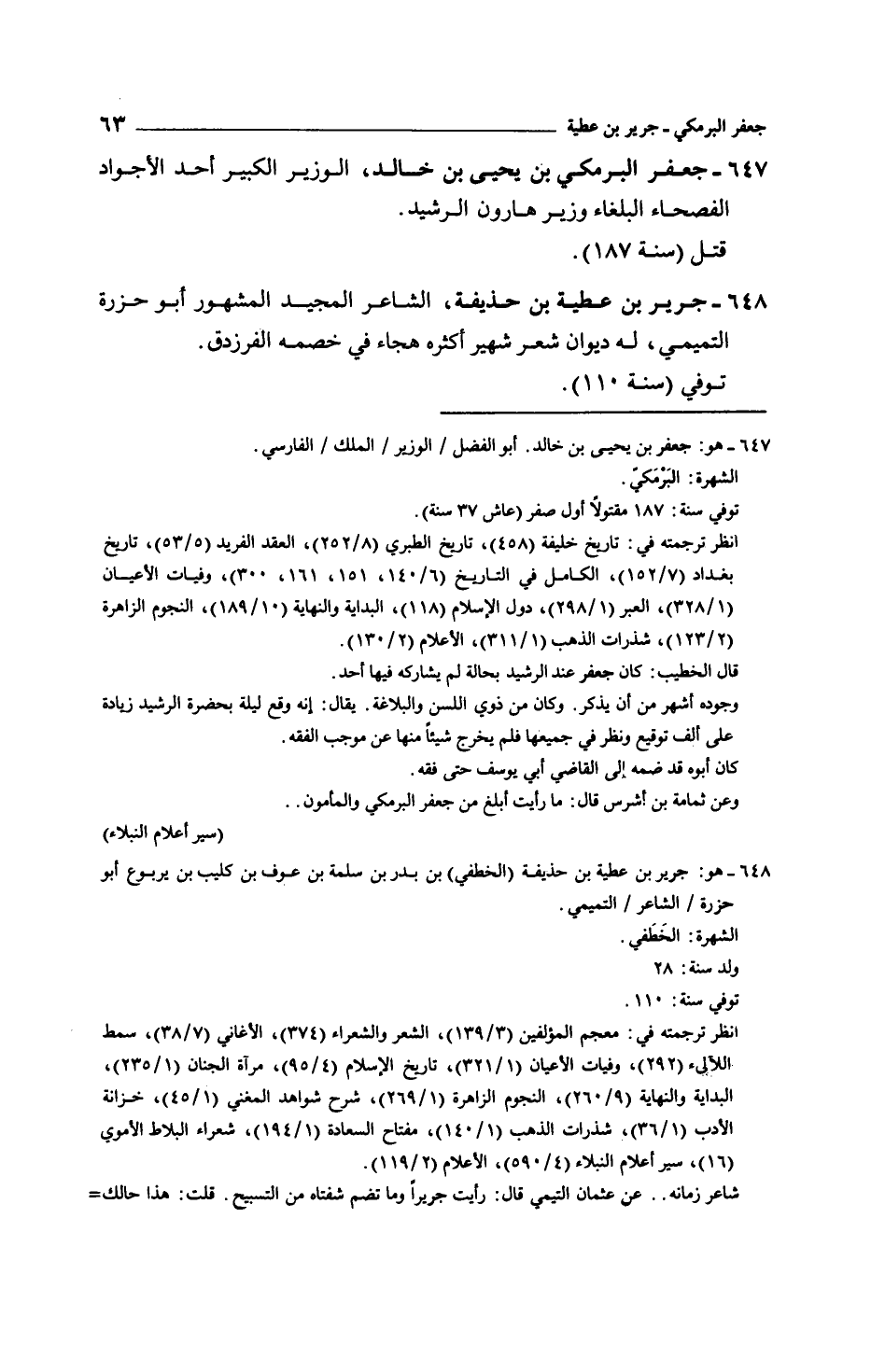 جعفر البرمكي بن يحيى بن خالد، الوزير الكبير أحد الأجواد الفصحاء البلغاء وزير هارون الرشيد.