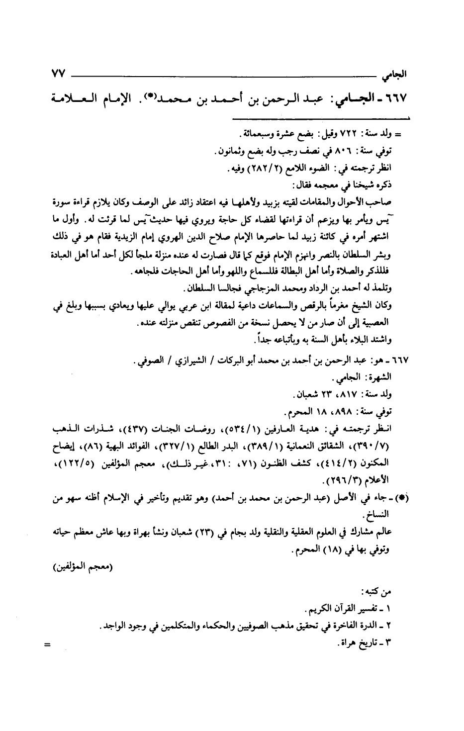 الجامي: عبد الرحمن بن أحمد بن محمد. الإمام العلامة