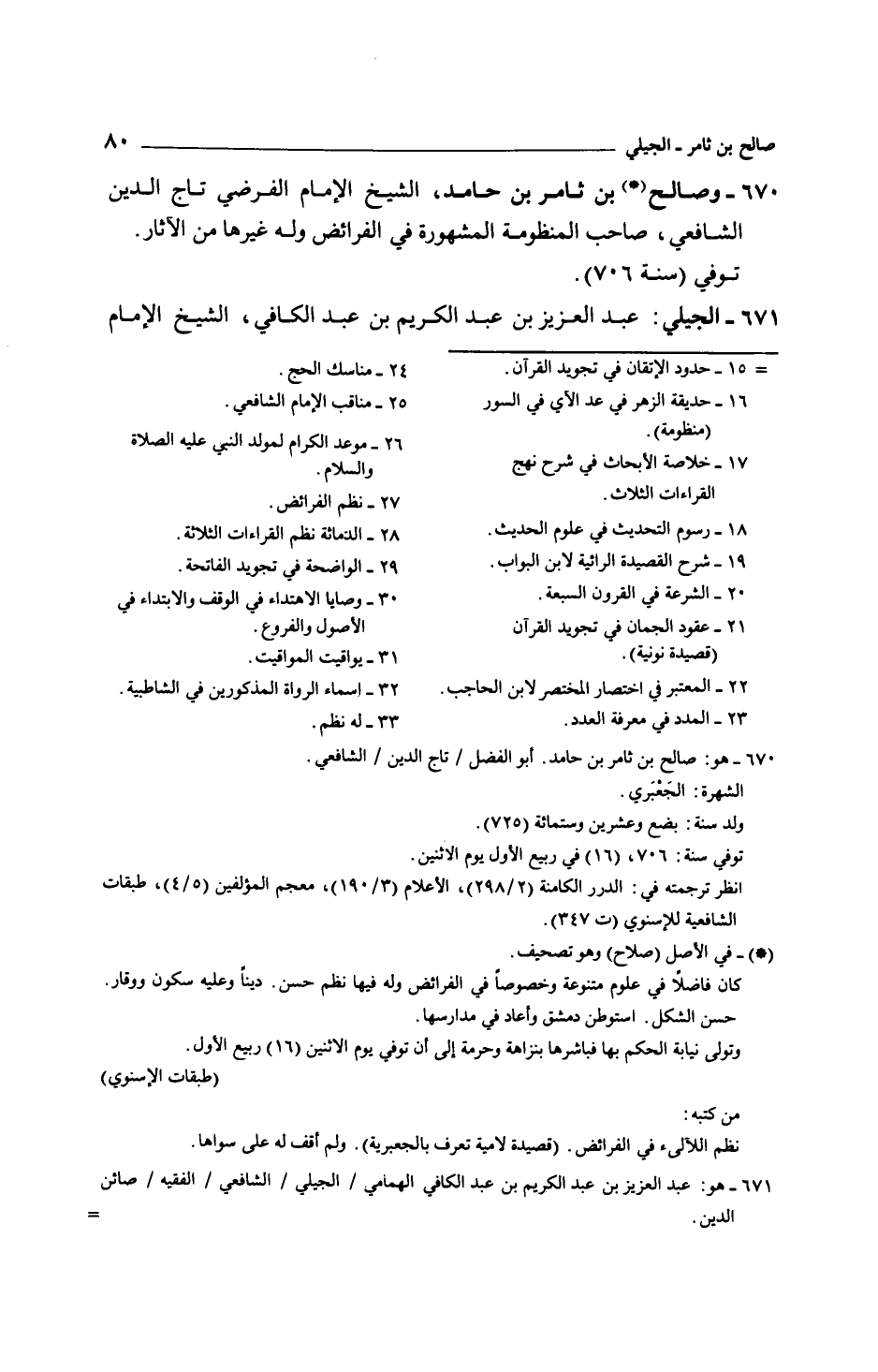 وصالح بن ثامر بن حامد، الشيخ الإمام الفرضي تاج الدين الشافعي، صاحب المنظومة المشهورة في الفرائض وله غيرها من الآثار.