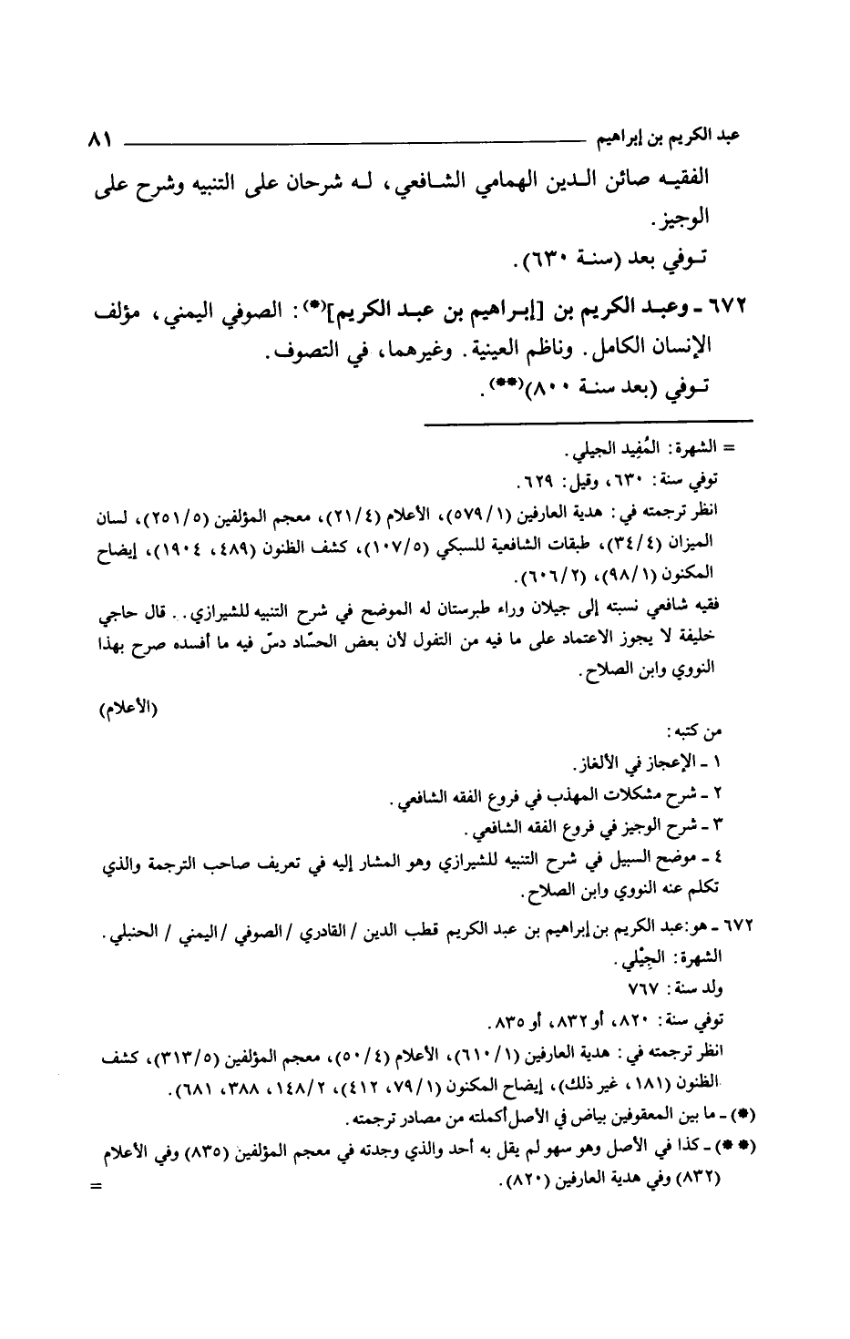 وعبد الكريم بن إبراهيم بن عبد الكريم: الصوفي اليمني، مؤلف الإنسان الكامل. وناظم العينية. وغيرهما، في التصوف.