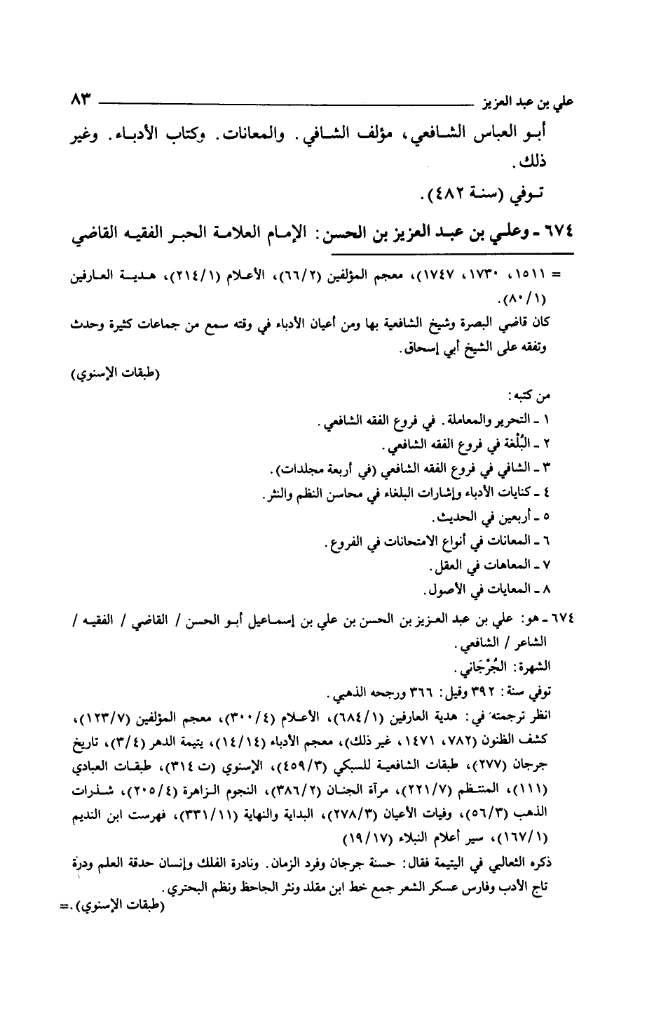 وعلي بن عبد العزيز بن الحسن: الإمام العلامة الحبر الفقيه القاضي