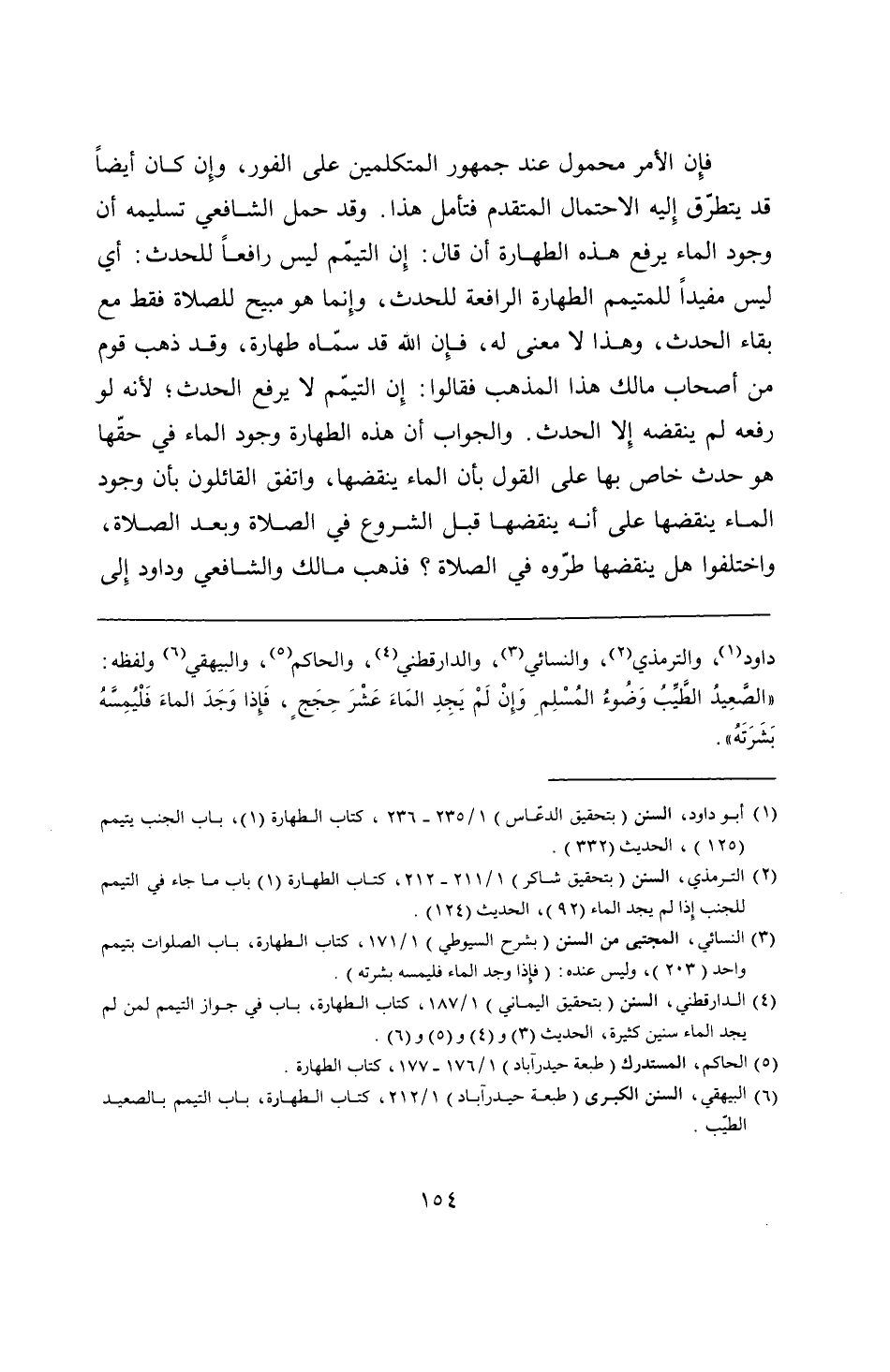 داود، والترمذي، والنسائي، والدارقطني، والحاكم، والبيهقي ولفظه: "الصَّعِيدُ الطَّيبُ وَضُوءُ المُسْلِمِ وَإِنْ لَمْ يَجِدِ المَاءَ عَشْرَ حِجَجٍ، فَإِذا وَجَدَ الماءَ فَلْيُمِسَّهُ بَشَرَتَهُ".