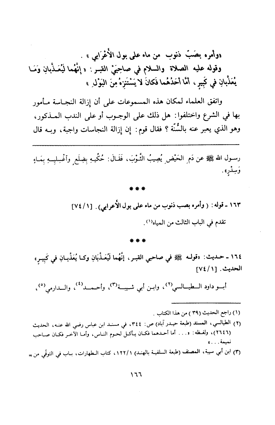 164 - حديث: "قوله - صلى الله عليه وسلم - في صاحبي القبر، إنَّهُما لَيُعَذبَانِ وما يُعَذَّبانِ في كبِيرٍ" الحديث.