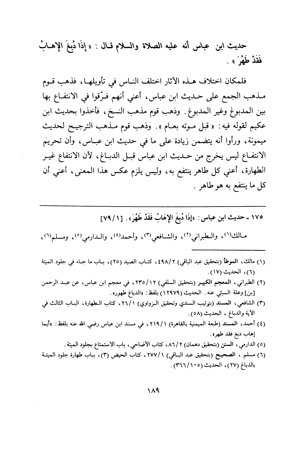 175 - حديث ابن عباس: "إذَا دُبغَ الإهَابُ فَقَدْ طَهُرَ".