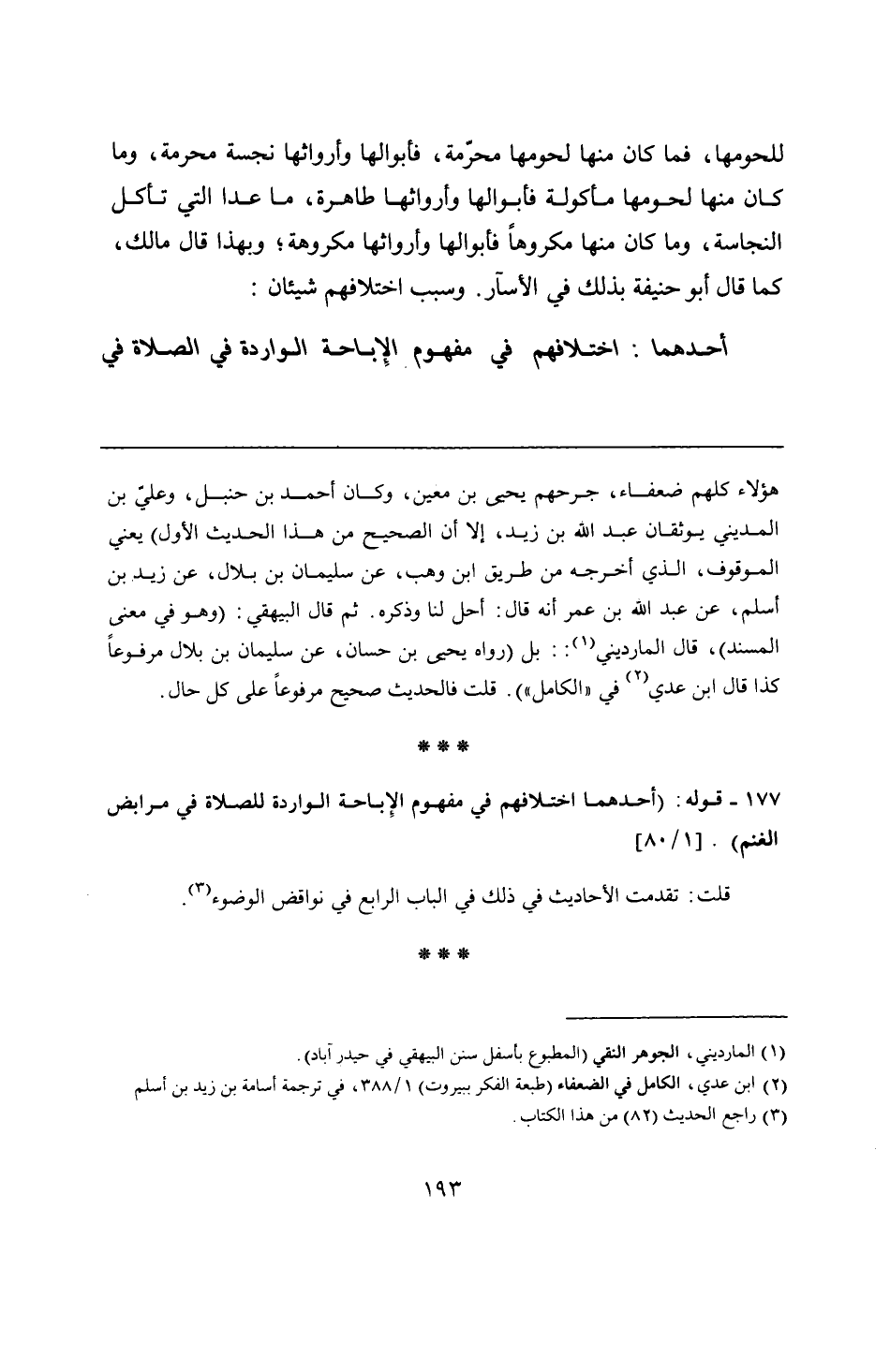 177 - قوله: (أحدهما اختلافهم في مفهوم الإباحة الواردة للصلاة في مرابض الغنم).