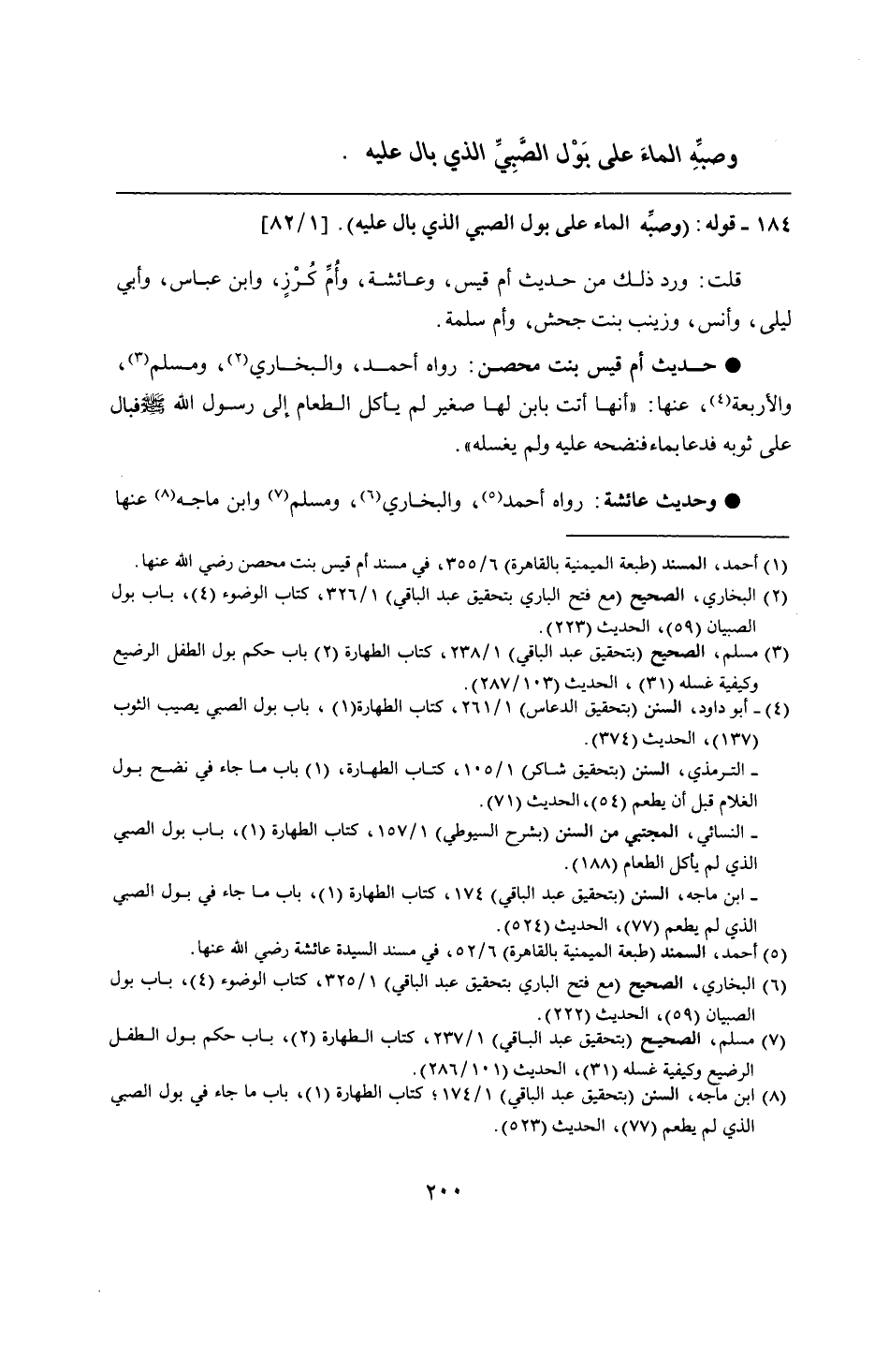 184 - قوله: (وصبَّه الماء على بول الصبي الذي بال عليه).