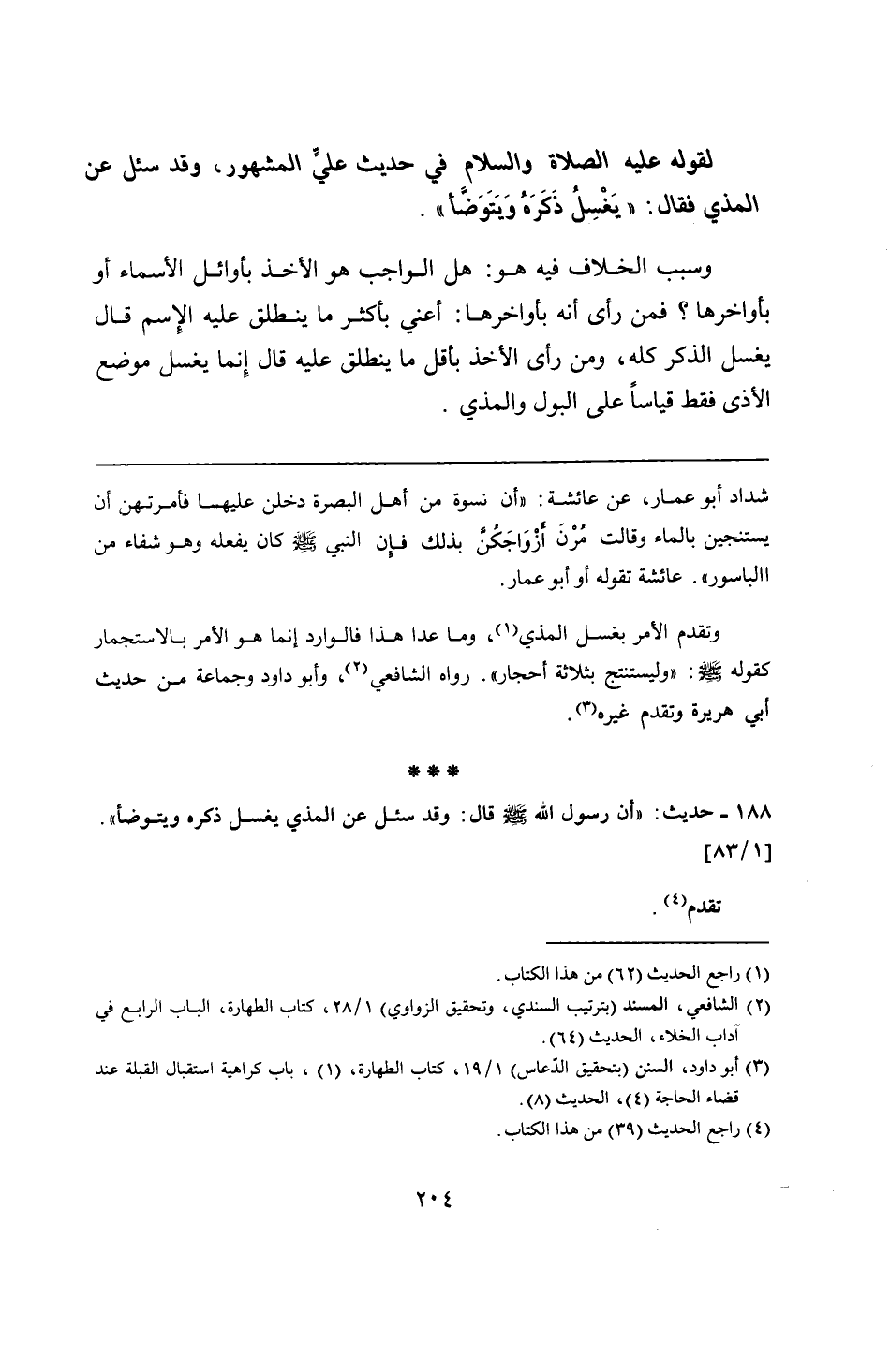 188 - حديث: "أن رسول الله - صلى الله عليه وسلم - قال: وقد سئل عن المذي يغسل ذكره ويتوضأ".