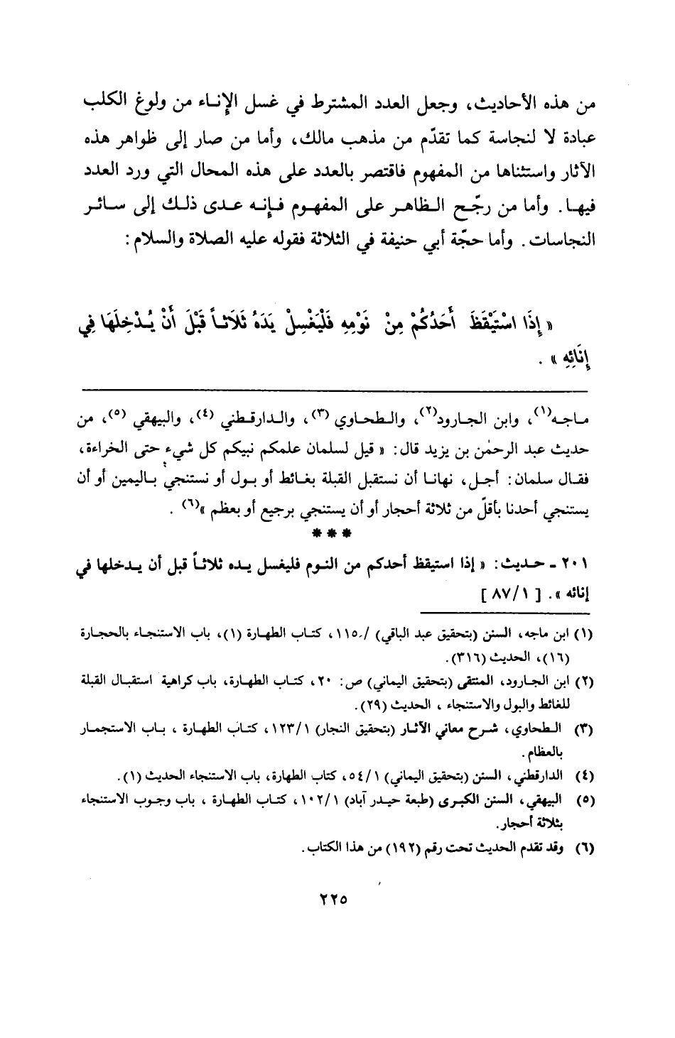 201 - حديث: "إذا استيقظ أحدكم من النوم فليغسل يده ثلاثًا قبل أن يدخلها في إنائه".