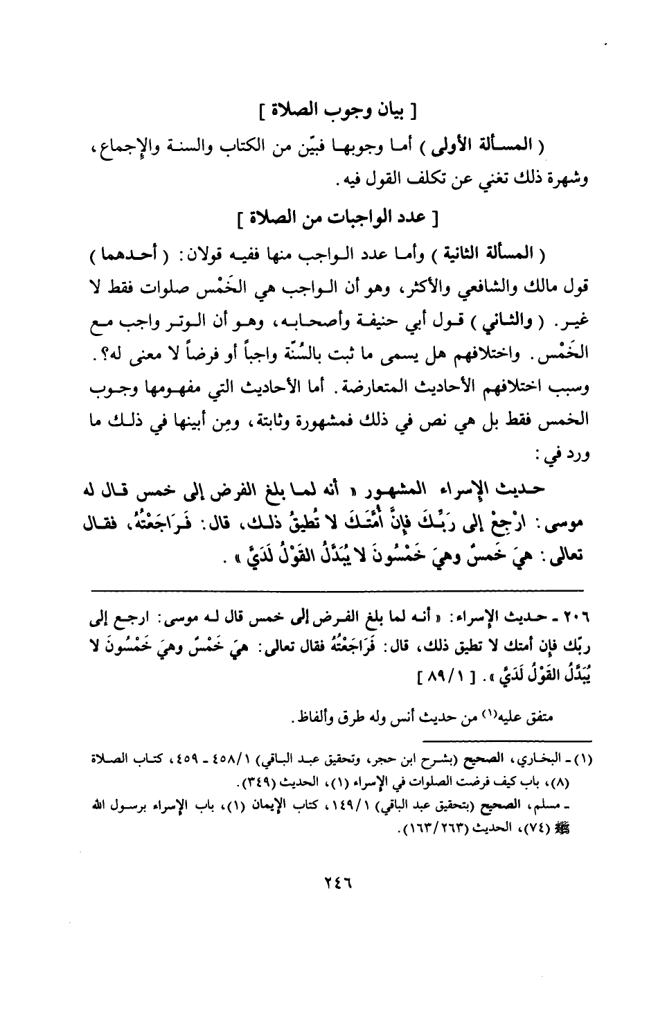 206 - حديث الإسراء: "أنه لما بلغ الفرض إلى خمس قال له موسى: ارجع إلى ربك فإن أمتك لا تطيق ذلك، قال: فَرَاجَعْتُهُ فقال تعالى: هي خَمْسٌ وهيَ خَمْسُونَ لا يُبَدلُ القَوْلُ لَديَّ".