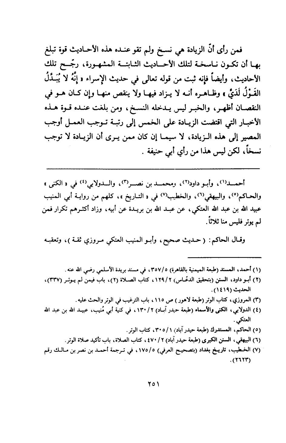 أحمد، وأبو داود، ومحمد بن نصر، والدولابي في "الكنى" والحاكم، والبيهقي، والخطيب في "التاريخ"، كلهم من رواية أبي المنيب عبيد الله بن عبد الله العتكي، عن عبد الله بن بريدة عن أبيه، وزاد أكثرهم تكرار فمن لم يوتر فليس منا ثلاثًا.
