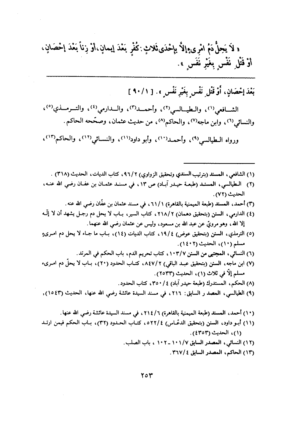 بَعْدَ إحْصَانٍ، أوْ قَتْلِ نَفْسٍ بِغَيْرِ نَفْسٍ".