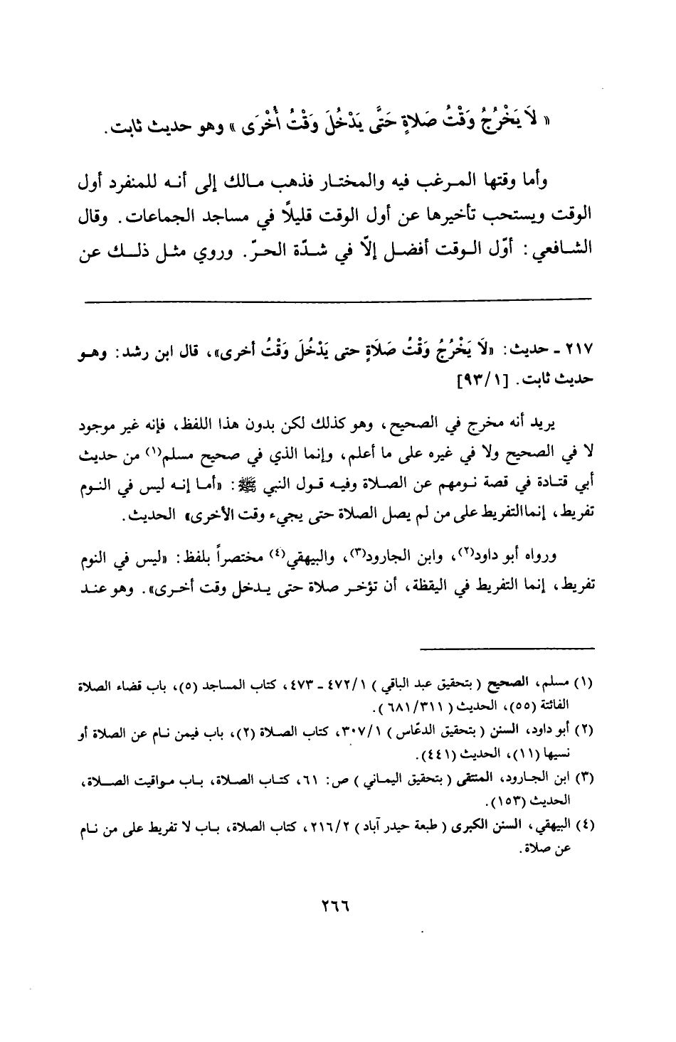 217 - حديث: "لَا يَخْرُجُ وَقْت صَلاَةٍ حتى يَدْخُلَ وَقْتُ أخرى"، قال ابن رشد: وهو حديث ثابت.