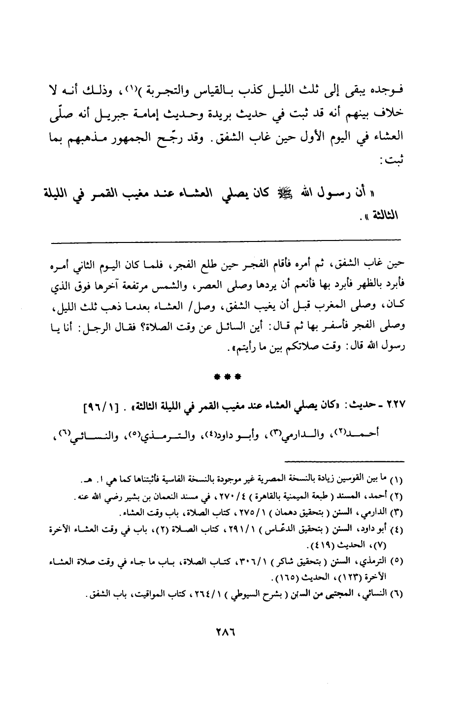 227 - حديث: "كان يصلي العشاء عند مغيب القمر في الليلة الثالثة".