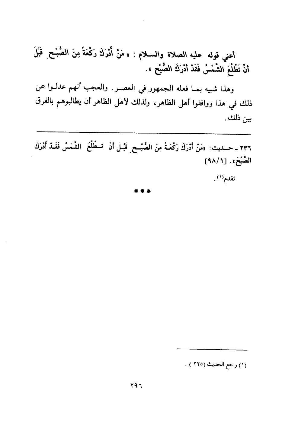 236 - حديث: "مَنْ أدرَكَ رَكعَة مِنَ الصُّبْحِ قَبْلَ أنْ تطْلُعَ الشمْسُ فَقَدْ أدرَكَ الصبحَ".
