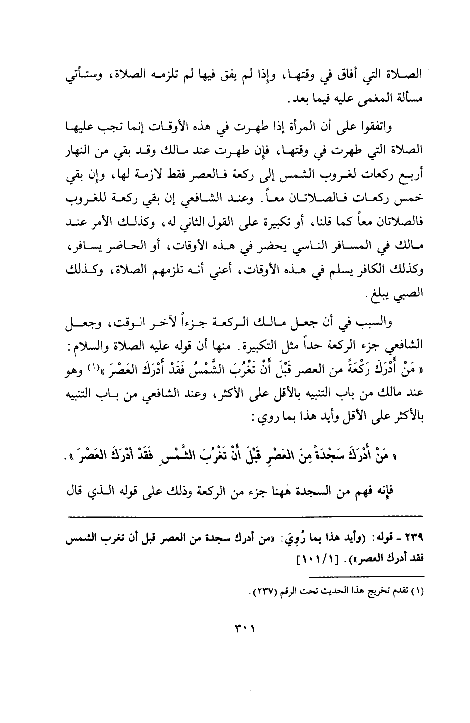 239 - قوله: (وأيد هذا بما رُوِيَ: "من أدرك سجدة من العصر قبل أن تغرب الشمس فقد أدرك العصر").