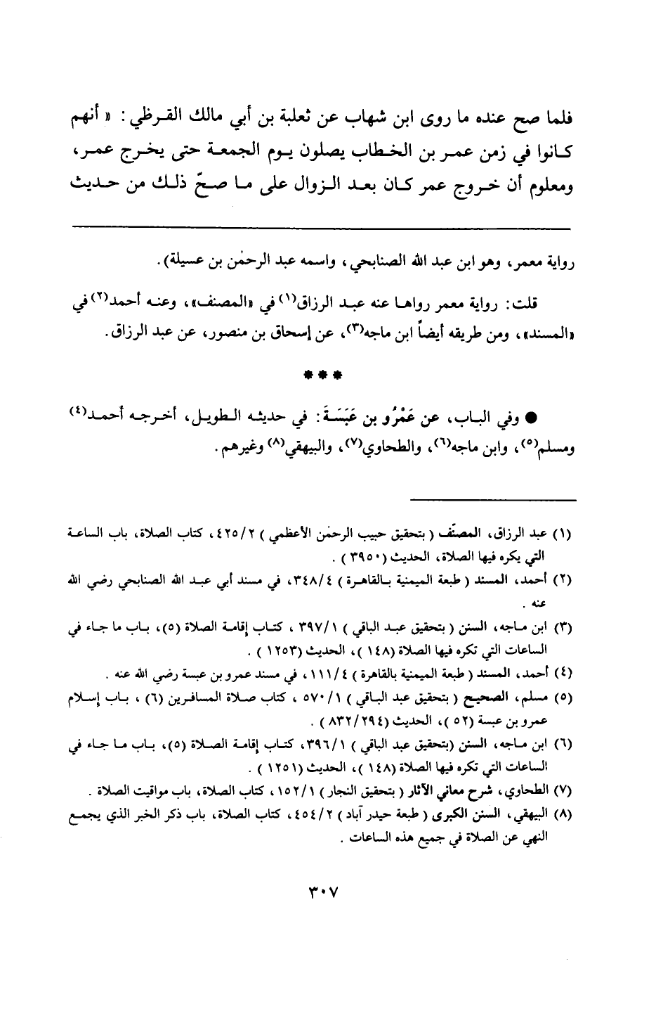 رواية معمر، وهو ابن عبد الله الصنابحي، واسمه عبد الرحمن بن عسيلة).