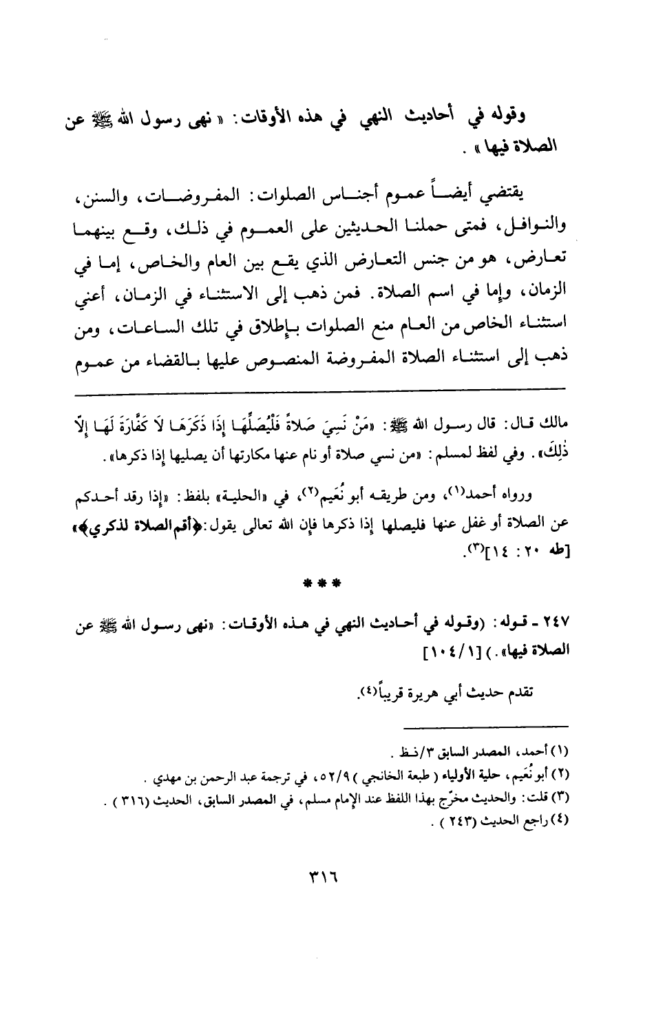 247 - قوله: (وقوله في أحاديث النهي في هذه الأوقات: "نهى رسول الله - صلى الله عليه وسلم - عن الصلاة فيها".)